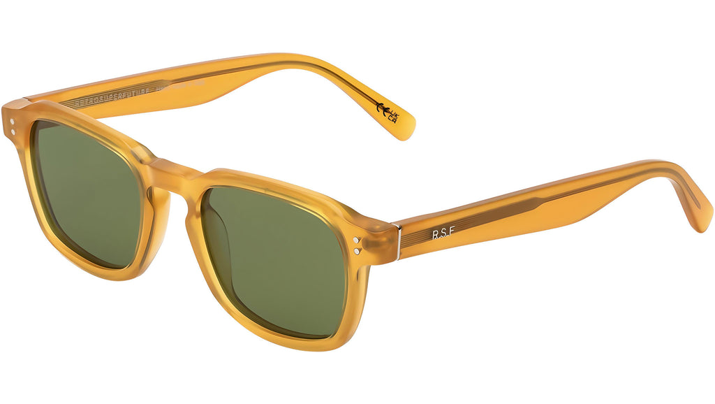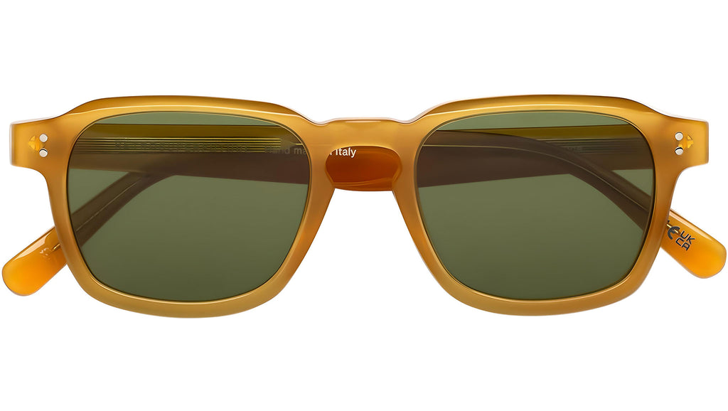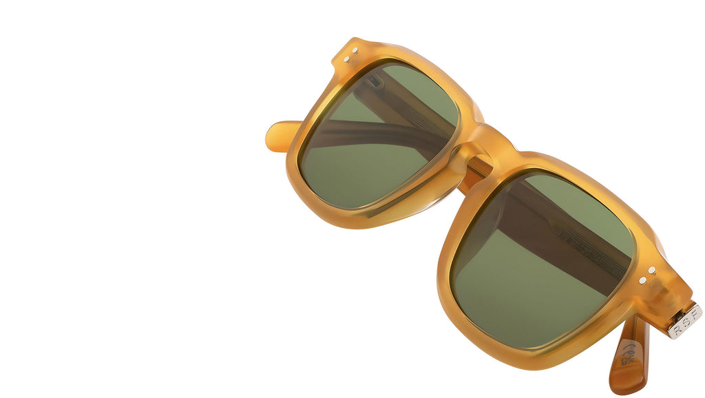 Luce is an iconic silhouette that builds on vintage references to obtain a modern day essential classic. Characterized by a wide horizontal profile, with angular temple tips, sleek rims and chiseled upper line, Luce is a sharp update on classic everyday frames. This model features a soothing honey like acetate paired with elegant bottle green lenses for an elevated yet essential look. Sizes: R. Lens Width: 50 mm. Frame Front: Frame Side: 145 mm. Product Code Size R: XY8.