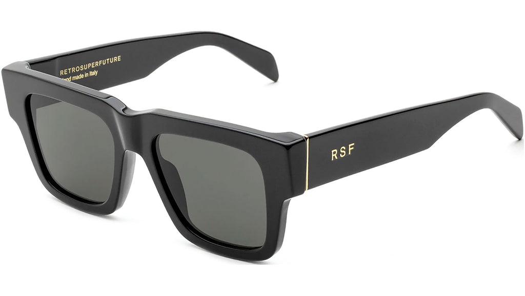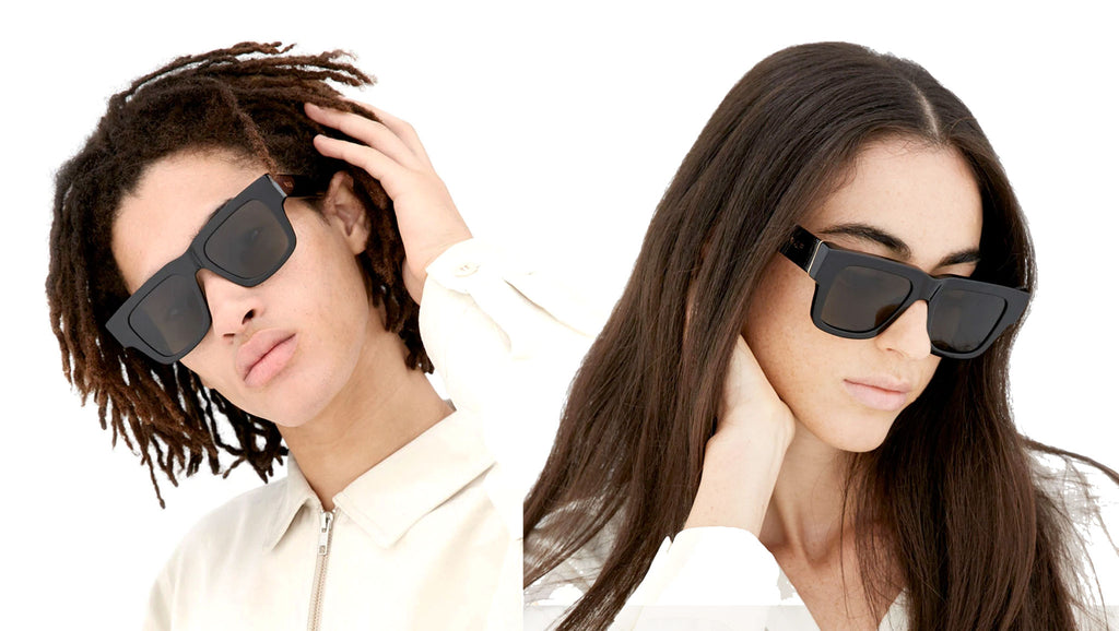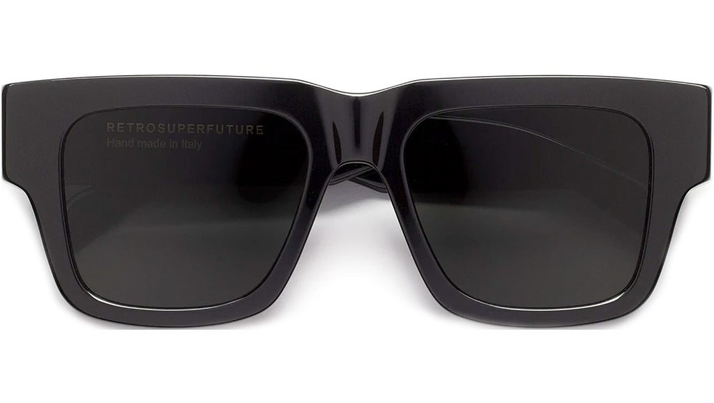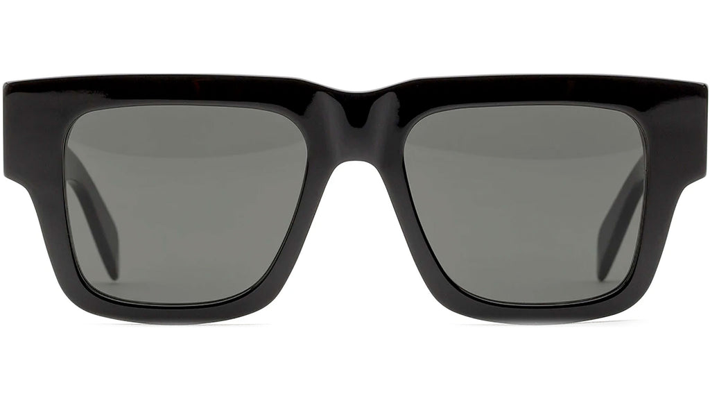 Designed for Spring/Summer 2021, Mega is a statement silhouette conceived as a modern unisex oversized frame. Crafted from high-end Italian acetate for a compact and precise design, the model features tall, thick rims, a sturdy nose-bridge and angular lenses. This version comes in black acetate and black lenses. The box contains a semi-hard case and a cleaning cloth.