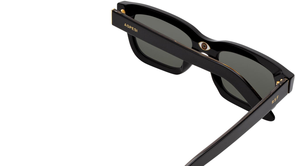 Designed in collaboration with Aspesi, this version of Milano elevates everyday eyewear with playful detailing. Known for their unique approach to design that emphasises a playful minimalism and timelessness, Aspesi is a historical Milanese brand. This model celebrates Aspesi’s approach to design with a classic 1950s-inspired shape that comes in an all-black finish with a playful eye-shaped décor on interior of the nose-bridge. Sizes: R Lens Width: 54 mm. Frame Front: 146 mm. Frame Side: 145 mm. Product Code Size R: 6UF