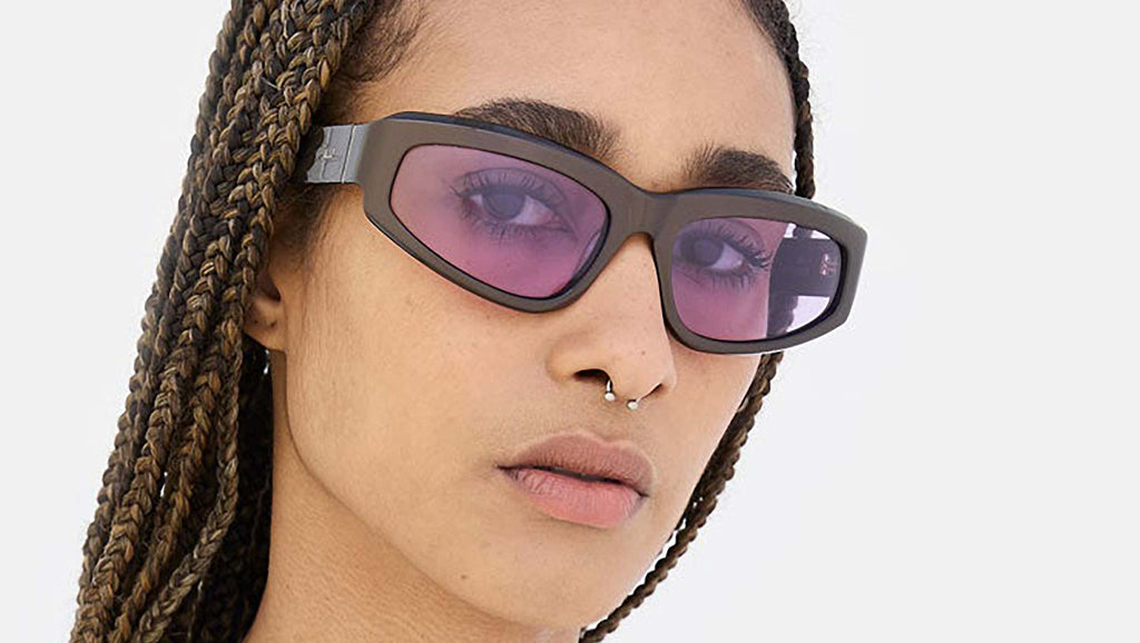 Motore came to this earth with an athletic core, but gradually matured with time and thanks to its evolution this design grew into an elegant and fashion forward piece that boasts a strong confident character. Motore’s sharp lines and low riding frame kept the eyewear’s fast character, while its meticulous acetate carving and refined details gave the piece its distinctive and sophisticated manner. This version is available in a unique metallic brown acetate and acid purple lenses. Sizes: R. Lens Width: 61 mm. Frame Front: Frame Side: 125 mm. Product Code Size R: D5O.