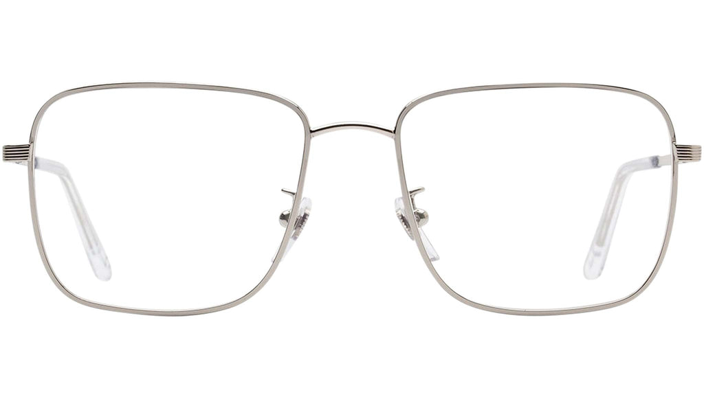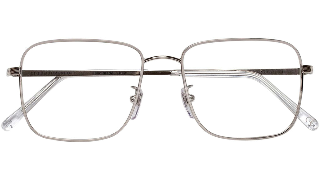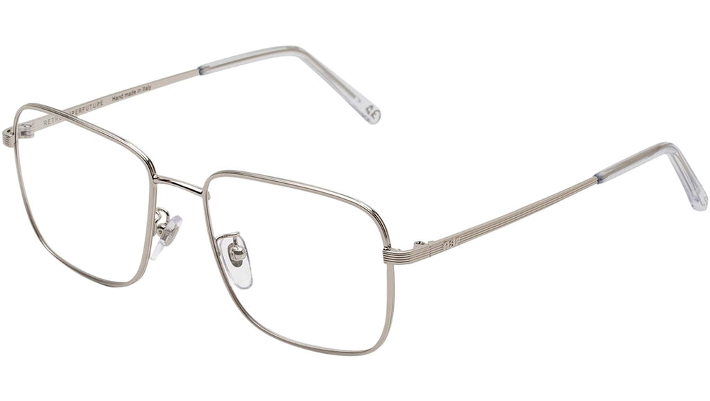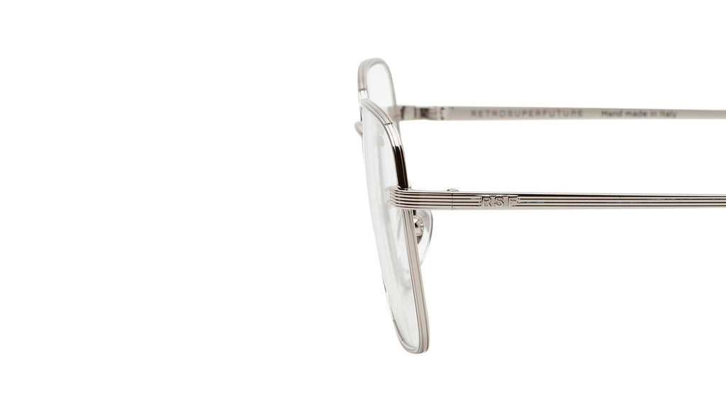 Numero 105 by Retrosuperfuture is a sleek metal silhouette, characterized by an essential, yet characteristic design. The model was conceived as an oversized yet streamlined everyday metal shape, featuring determined squared lenses encased within sturdy metal rims. The unique temples, exclusively moulded for RSF’s collection further give the model its distinctive architectural character. This version comes in a shiny silver metal with sleek acetate temple tips for a comfortable all-day-everyday wear. Sizes: R Lens Width: 54 mm. Frame Front: Frame Side: 145 mm. Product Code Size R: GKT