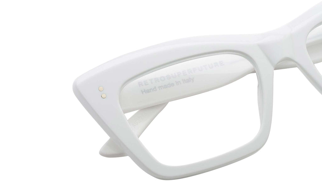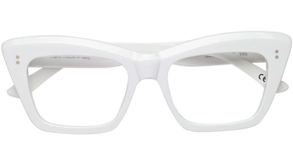 An exuberant silhouette, Numero 107 is a statement Optical frame designed to stand out from the crowd. This oversized frame boasts a bold acetate when seen from the front, yet it has been carved on the sides for lightness and functionality for an everyday use. Therefore maintaining a balance with functionality while pushing forward a fresh aesthetic vision for everyday eyewear. Its characteristic thick brow plays with structured geometries for a bold and quirky design. This version of Numero 107 comes in a solid white acetate. Sizes: R Lens Width: 54 mm Frame Front: Frame Side: 145 mm Product Code Size R: 8SW
