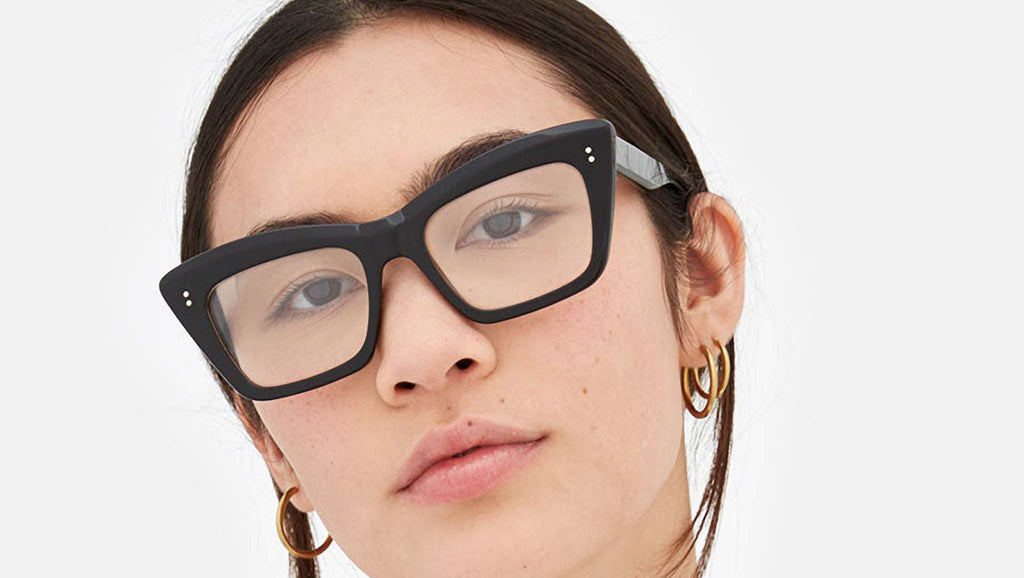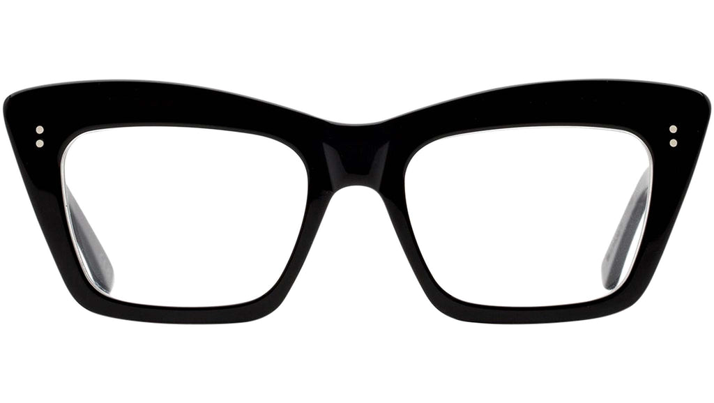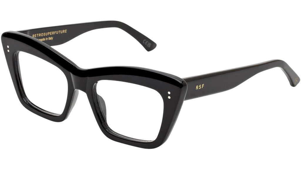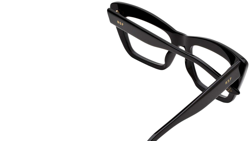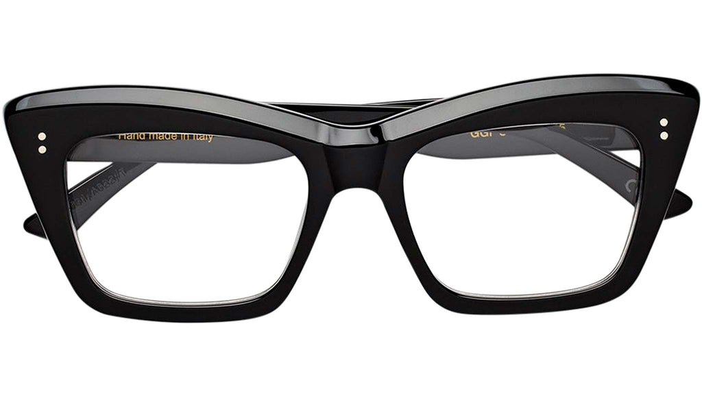 An exuberant silhouette, Numero 107 is a statement Optical frame designed to stand out from the crowd. This oversized frame boasts a bold acetate when seen from the front, yet it has been carved on the sides for lightness and functionality for an everyday use. Therefore maintaining a balance with functionality while pushing forward a fresh aesthetic vision for everyday eyewear. Its characteristic thick brow plays with structured geometries for a bold and quirky design. This version of Numero 107 comes in shiny black acetate Sizes: R Lens Width: 54 mm. Frame Front: Frame Side: 145 mm. Product Code Size R: GGI