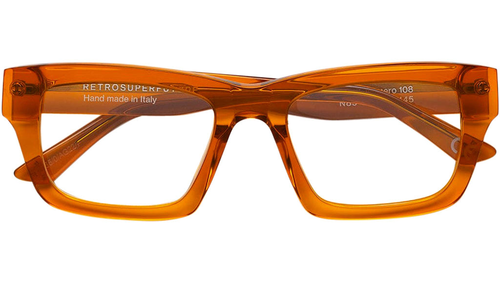 Sharp angles and precise geometries define Numero 108, a sleek all-day-everyday frame with a street edge. Angular lenses and pointed temples give this shape its distinctive features by elevating timeless modernist aesthetics. RSF’s signature sturdy acetate construction has been carved to offer a lighter, more functional and fitting design for everyday use, while still resulting in a bold shape full of character. Numero 108 comes in a polished clay-tinted acetate. Sizes: R Lens Width: 53 mm. Frame Front: Frame Side: 145 mm. Product Code Size R: N85