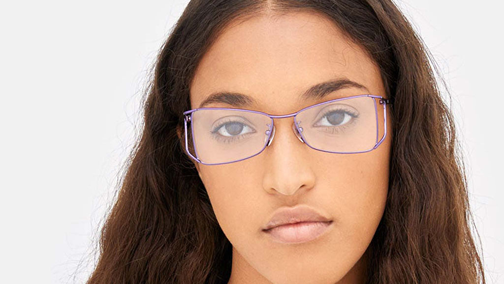 Numero 114 by Retrosuperfuture is a cutting-edge metal frame designed for Optical use. A fresh, modern shape, Numero 114 captures an innovative street aesthetics. Crafted from tubular steel, this functional shape features slanted lenses and hollow temple tips. Well-constructed temples and acetate tips complete this forward-looking frame designed for everyday use. This version of Numero 114 comes in a shiny chromed lilac finish. Sizes: R Lens Width: Frame Front: Frame Side: Product Code Size R: RNC