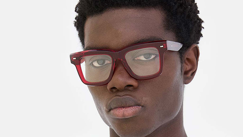 Numero 116 by Retrosuperfuture is a bold Optical frame characterized by an oversized design that reinterprets iconic sun shapes for everyday use. The model features sturdy acetate rims, a key feature of RSF eyewear, chiseled for lightness and comfort, without compromising its thick build. This is a model designed for those looking for a statement yet timeless piece of eyewear. This version comes in a dark, deep red acetate. Sizes: R Lens Width: 51 mm. Frame Front: Frame Side: 145 mm. Product Code Size R: 6LX