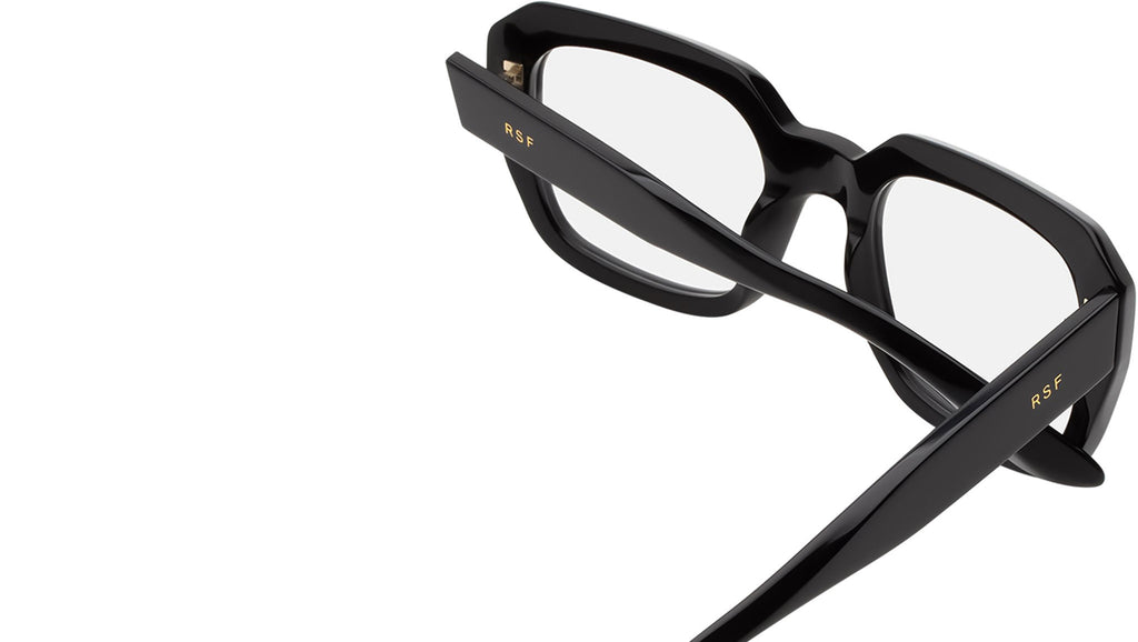 Numero 125 is an oversized design with a trustworthy and sturdy build for an all day everyday wear. The acetate is carved in a functional way to maintain a lightweight frame, ensuring a comfortable wear throughout the day. This version of the Numero 125 is in a timeless shiny black acetate for a classic yet contemporary style, featuring bold lines and a strong presence. Handcrafted in Italy. Sizes: Lens Width: 53 mm. Frame Front: 0 mm. Frame Side: 145 mm.