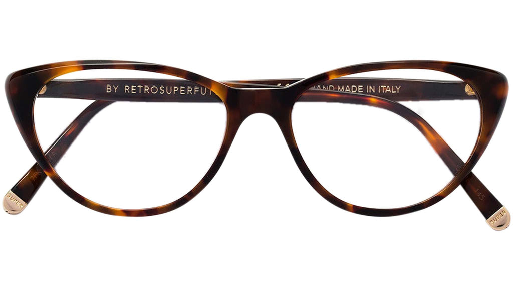 Numero 49 by Retrosuperfuture is a feminine cat-eye silhouette, interpreted with a sharp contemporary twist. This fashionable model is characterised by wide lenses and thick rims around the temples, with a bold nose bridge and sleek arms. This version of the model comes in a vibrant Classic Havana acetate. Prescription lenses not included. The box contains a hard case and a cleaning cloth.