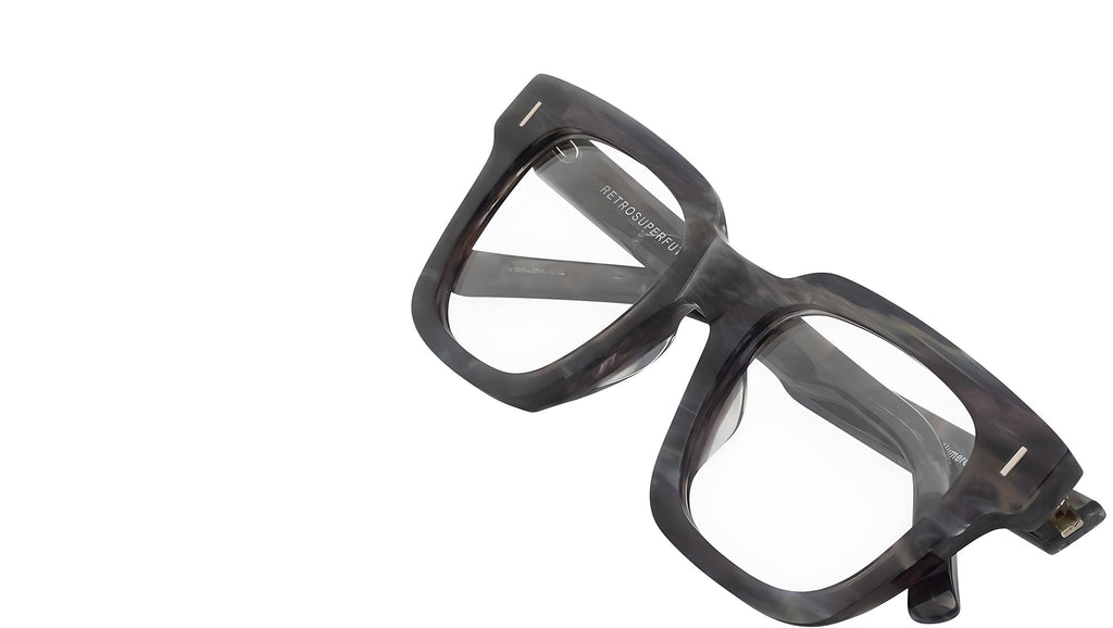 Numero 79 is an iconic silhouette, conceived as a modern interpretation of classic squared frames. The model’s thick acetate rims, with protruding temples and wide lenses are carved internally for lightness and fit. This version comes in a smokey blue-grey acetate. Prescription lenses not included. The box contains a hard case and a cleaning cloth. Sizes: R. Lens Width: 50 mm. Frame Front: Frame Side: 145 mm. Product Code Size R: T7J.