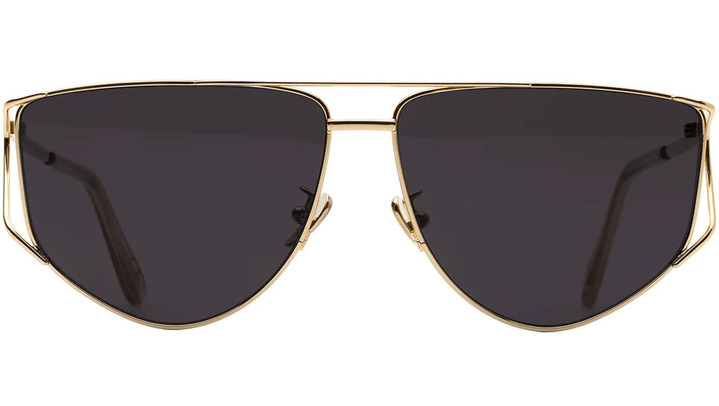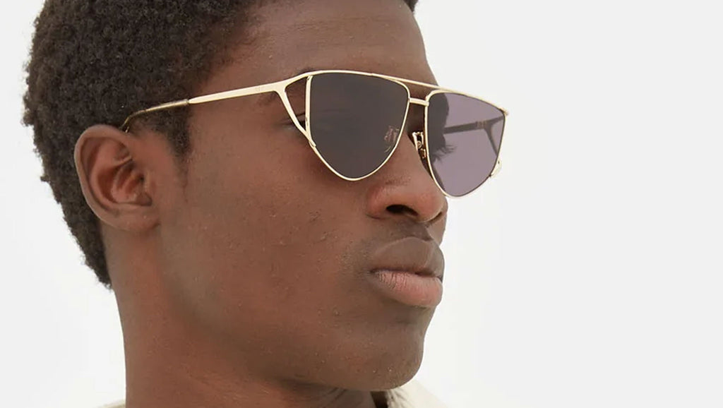 Premio is a fresh and modern interpretation of the aviator concept by RSF. Representing RSF’s approach to design by combining unique aesthetic features with functional and technical aspects of eyewear. The Premio’s rims are molded with tubular metal, which gives it a distinctive architectural quality, with reinforced detailing adding structure while strategically keeping areas hollow to underline the lightweight touch for functional everyday use. This version comes in shiny gold with black lenses.