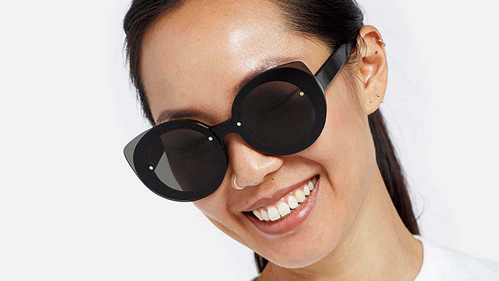 Retrosuperfuture sunglasses model Rita Black. Sizes: R Lens Width: 51 mm. Frame Front: 143 mm. Frame Side: 140 mm. Product Code Size R: SXD