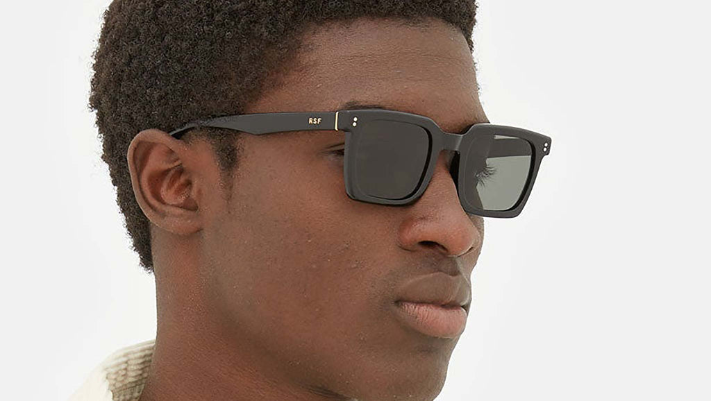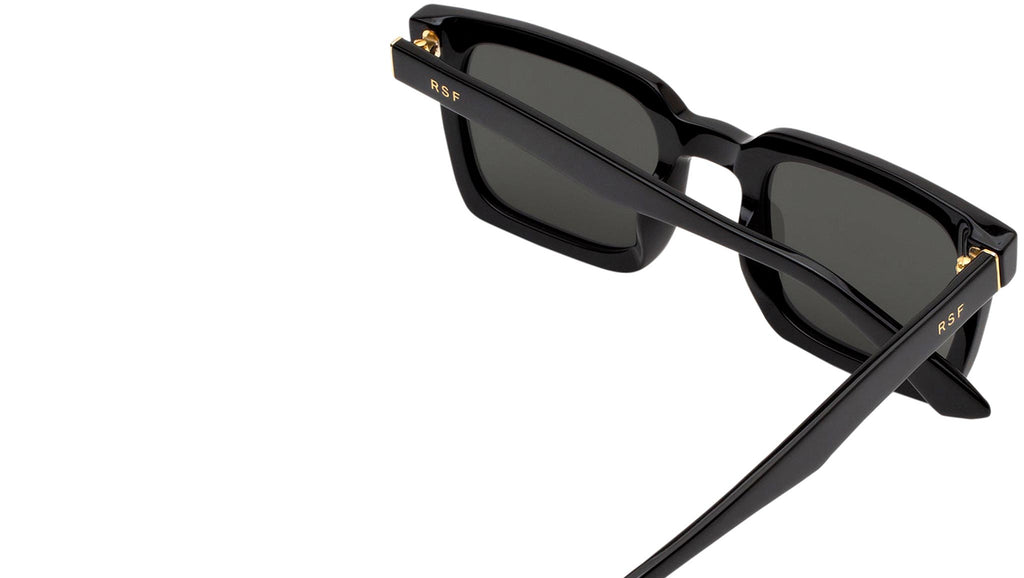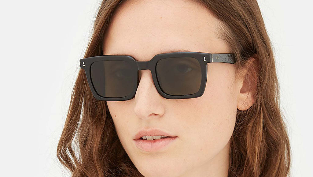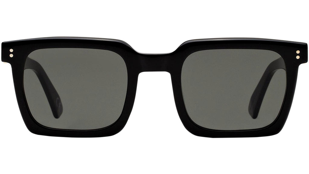 Secolo is an essential geometric silhouette with a distinctive architectural quality, where precise angles of the frame are balanced with its rounded lenses. This is an uncompromising, yet fitting shape for those looking for elegant, squared sunglasses with a unique modernist character. Its apparent simplicity and aesthetic purity conceal carefully crafted details, such as its pointed temple tips and sharp angular detailing on the temples. Secolo comes in a shiny black acetate with matching lenses. Sizes: Lens Width: 50 mm. Frame Front: Frame Side: 145 mm.