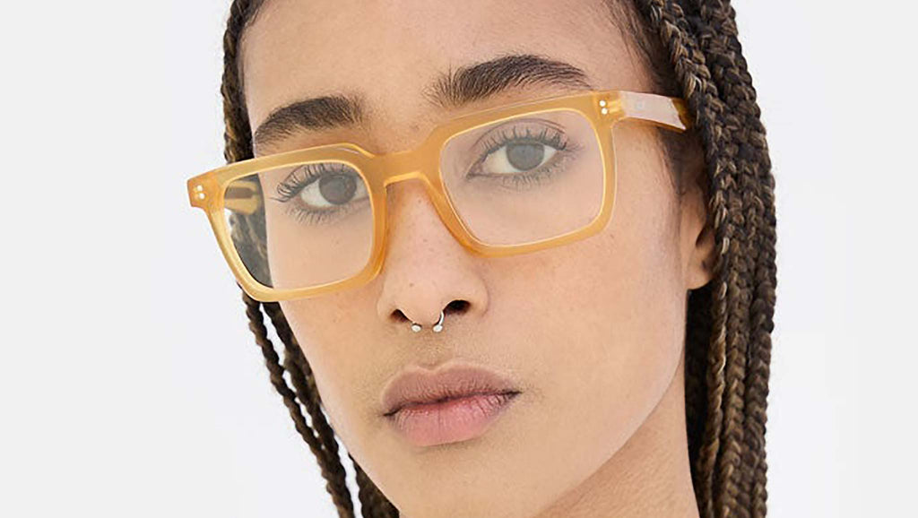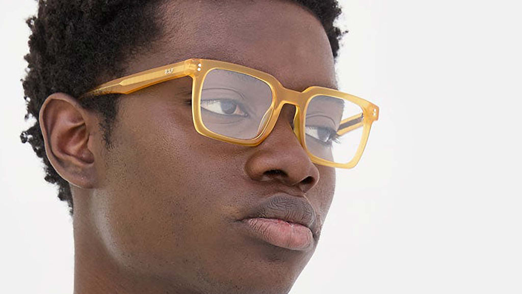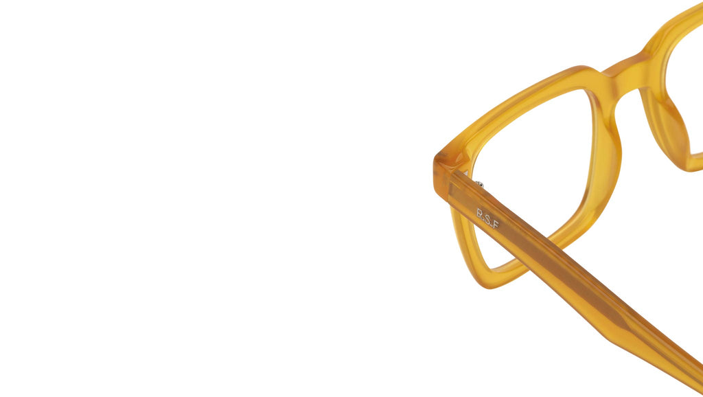 Secolo is an angular, clean shape designed for everyday optical use. A familiar silhouette, Secolo features squared rims with wide lenses for comfortable daily use. Its protruding temple tips feature two metal studs, while the lowered nose-bridge references classic vintage pieces. This version comes in a soft honey-tinted translucent acetate. Sizes: R Lens Width: 51 mm. Frame Front: Frame Side: 145 mm. Product Code Size R: SIX