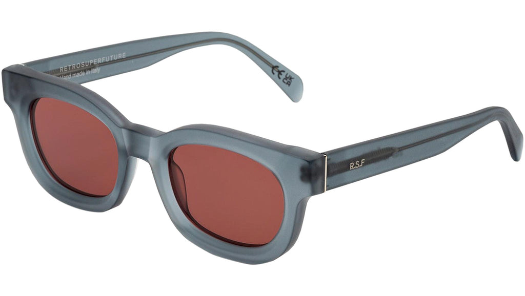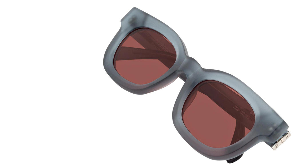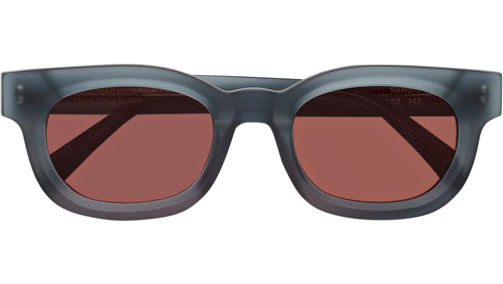 Sempre is an essential, everyday silhouette designed as a timeless classic. A reinterpretation of 1960s shapes, Sempre stands out with its softly carved rims with that extra depth around the lenses, giving the piece a unique sculptural quality. Its ovaloid lenses have a familiar, soothing quality while its squared temples elevate the design with sharp contemporary detailing and a precise geometric approach. This version of Sempre features a grey-blue translucent acetate with red clay tinted lenses. Sizes: R Lens Width: 52 mm. Frame Front: Frame Side: 145 mm. Product Code Size R: ZQ3