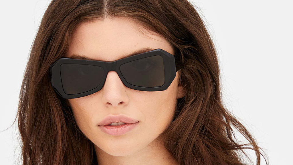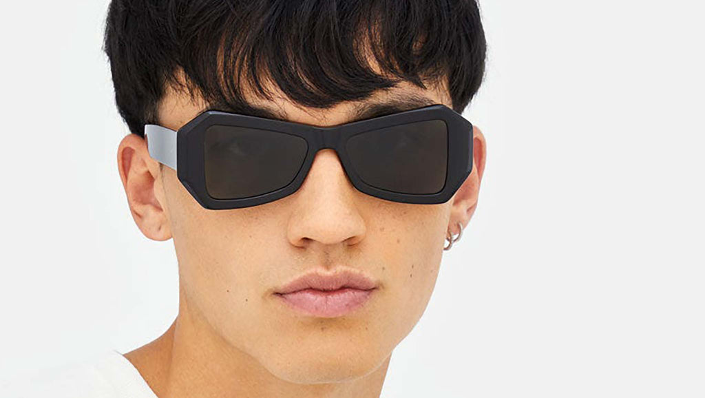 Known for their experimental approach to design, RSF have crafted a Tempio, a silhouette that is both fresh yet wearable. Templo blends street references with high-end fashion appeal. Characterised by sharp lines, the model features thick acetate rims that have been sculpted to form a V-shaped browline and oversized lenses. This futuristic-looking shape is a head-turning piece of eyewear. Tempio comes in black acetate with matching lenses. Sizes: R Lens Width: 53 mm. Frame Front: Frame Side: 145 mm. Product Code Size R: IJI