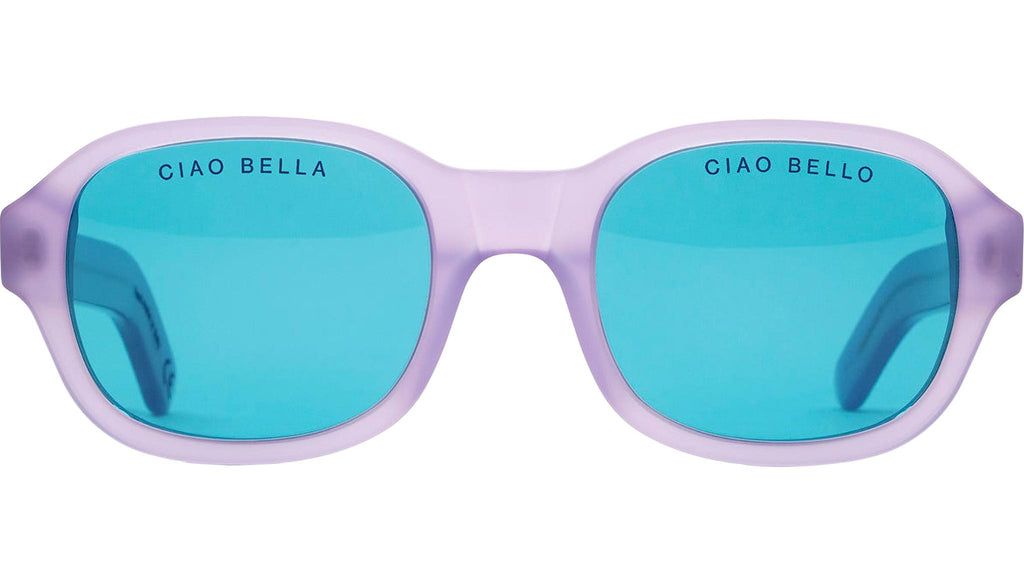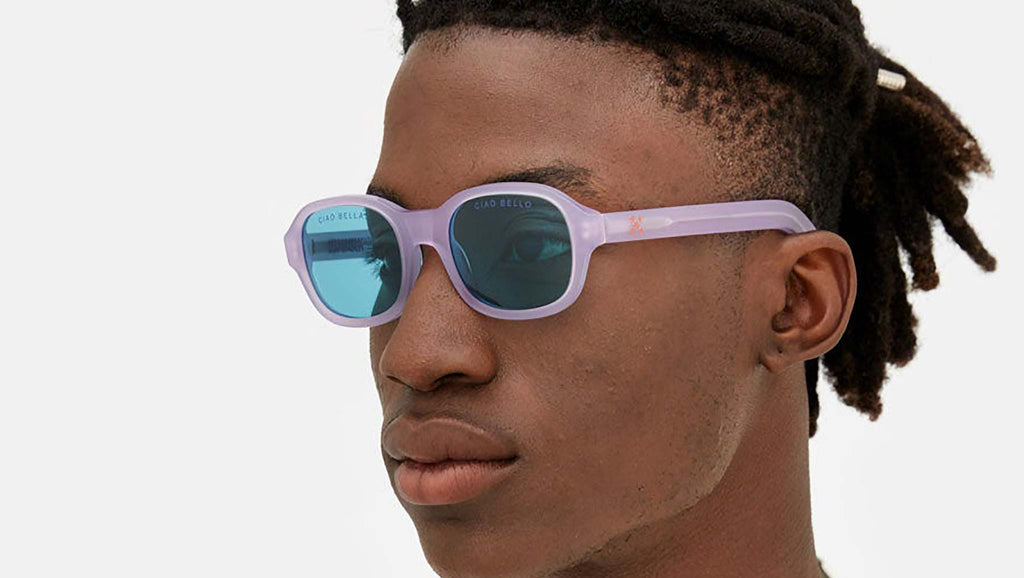 Designed in partnership with Mark Gonzales, these sunglasses are the celebration of the iconic status of this skateboarding and street-art legend. Gonzales, known as the inventor of street skating, has injected his creative style into this rounded pair of sunglasses, marked by wide oval lenses, a lowered nose-bridge and straight temples. The model comes in a translucent lilac acetate with blue tinted lenses. A key feature: two playful messages printed on the lenses: Ciao Bello and Ciao Bella, highlighting Gonz’s irreverent personal style. Sizes: R Lens Width: 54 mm. Frame Front: Frame Side: 145 mm. Product Code Size R: O9Z