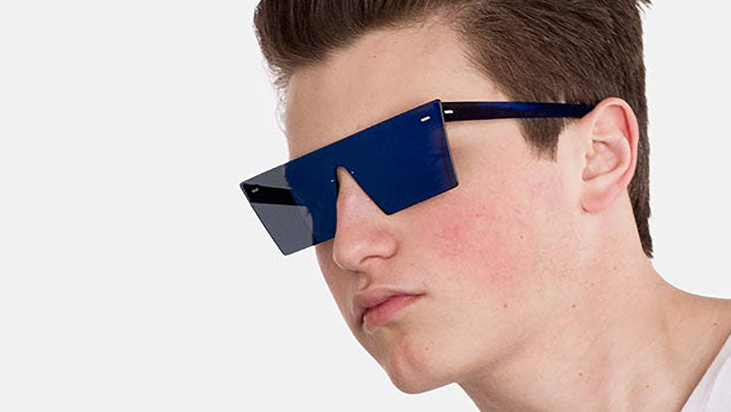 Retrosuperfuture sunglasses model Tuttolente W Blue. Sizes: R Lens Width: 58 mm. Frame Front: 135 mm. Frame Side: 137 mm. Product Code Size R: MIM