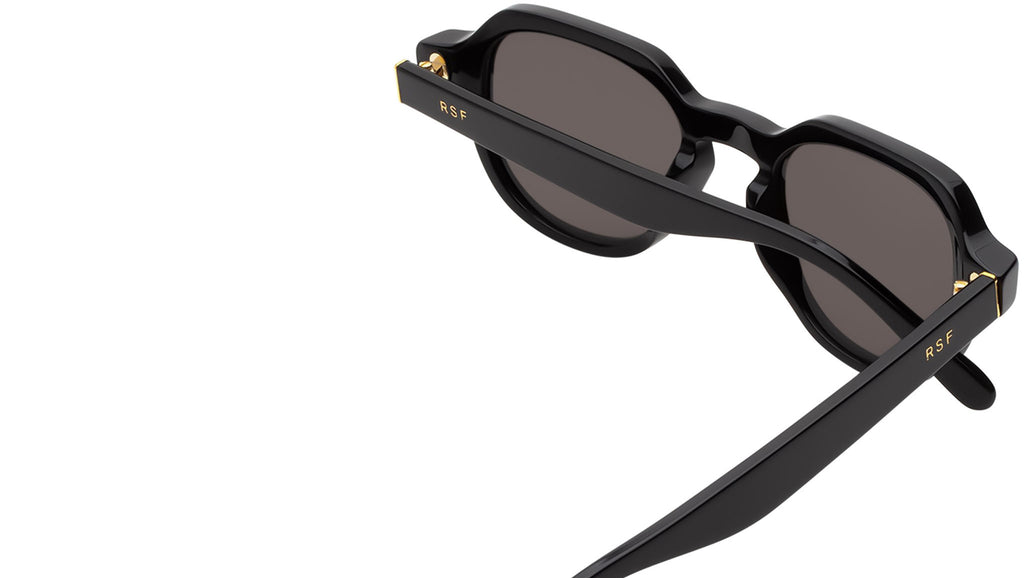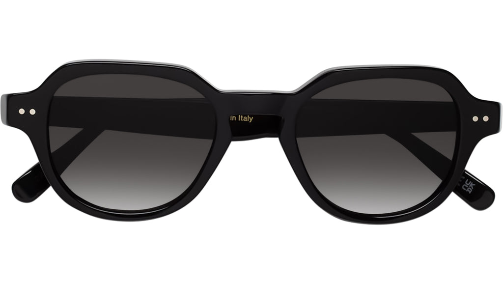 Voce features a sleek, round frame characterised by a timeless language of classic sophistication. Its essential design is topped off with two metal rivet decors on the frontal frame and slim, flexible acetate temples on the side, underlining its refined character. This version of the Voce comes in a timeless shiny black acetate with matching extra black Zeiss lenses. Handcrafted in Italy. Sizes: R. Lens Width: 49 mm. Frame Front: Frame Side: 145 mm. Product Code Size R: 2PG.