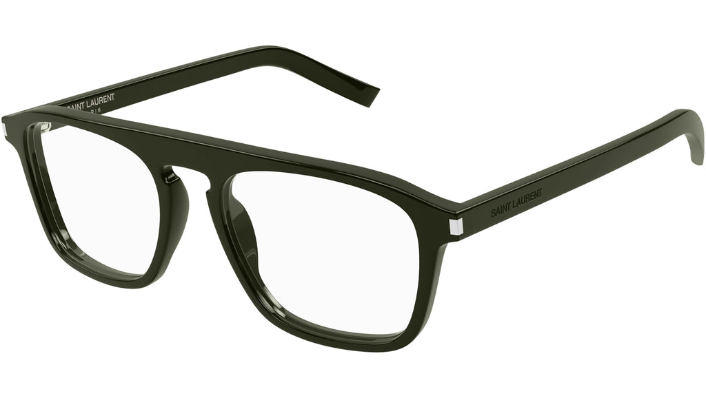 Occhiali da vista Saint Laurent SL 157 011 uomo con montatura rettangolare in acetato verde militare tinta unita lucido e lenti demo. Linea: New Wave. Codice modello: SL 157. Codice colore: 011. Made in Italy. Rivenditore autorizzato Saint Laurent online. Gli occhiali vengono consegnati con custodia e accessori originali e sono coperti dalla garanzia ufficiale di 12 mesi del produttore.