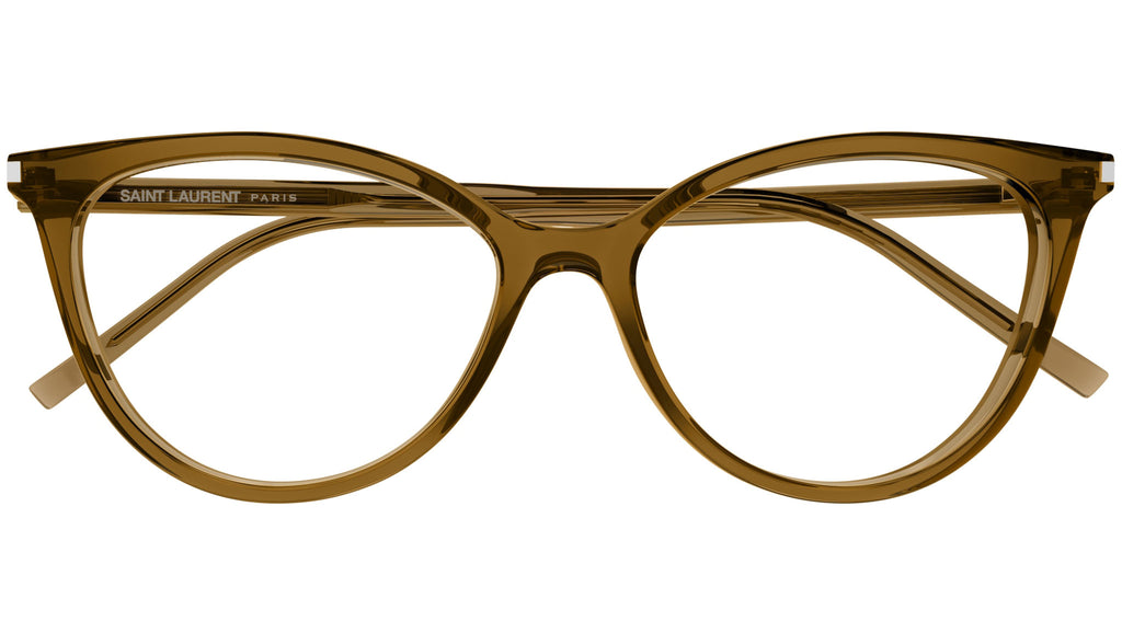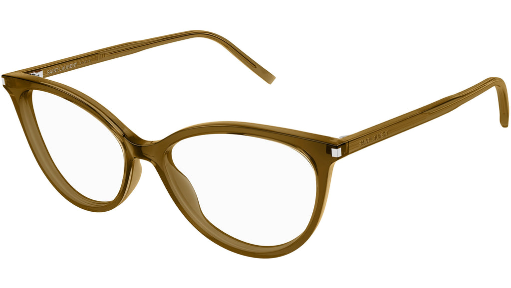 Occhiali da vista Saint Laurent SL 261 007 donna con montatura cat eye in acetato marrone cognac trasparente e lenti demo. Linea: Classic. Codice modello: SL 261. Codice colore: 007. Made in Italy. Rivenditore autorizzato Saint Laurent online. Gli occhiali vengono consegnati con custodia e accessori originali e sono coperti dalla garanzia ufficiale di 12 mesi del produttore.