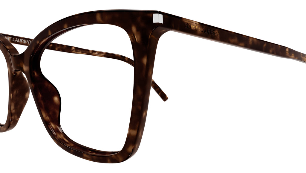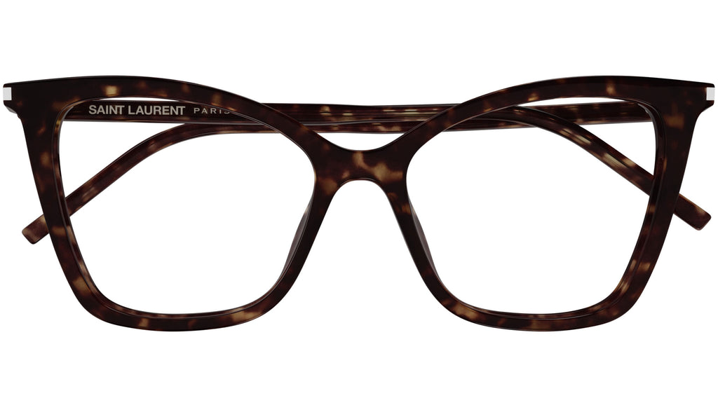 Occhiali da vista Saint Laurent SL 386 donna con montatura cat eye in acetato avana scuro lucido e lenti demo. Linea: Classic. Codice modello: SL 386. Codice colore 55 mm: 016. 53 mm: 014. Made in Italy. Rivenditore autorizzato Saint Laurent online. Gli occhiali vengono consegnati con custodia e accessori originali e sono coperti dalla garanzia ufficiale di 12 mesi del produttore.