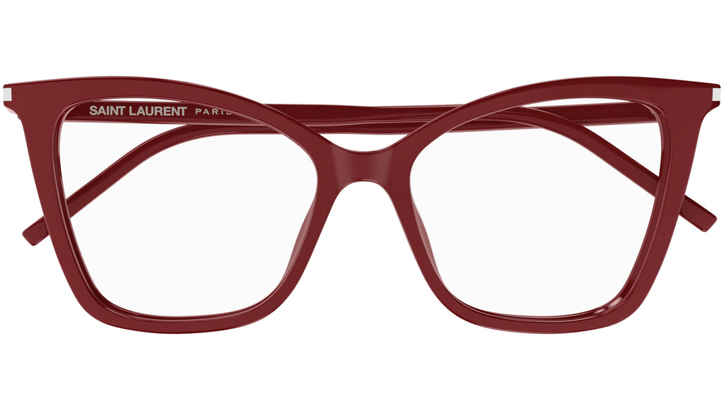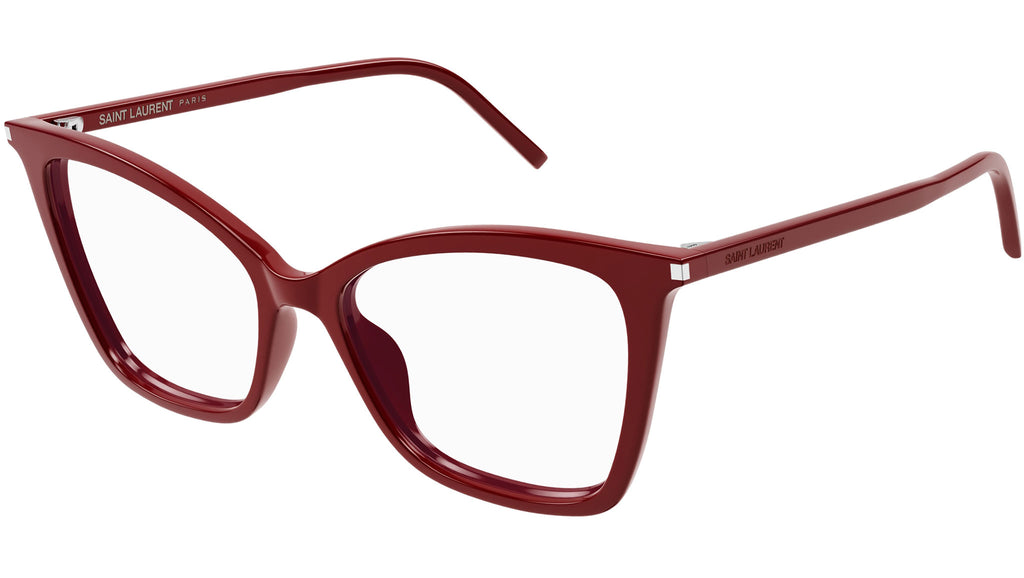Occhiali da vista Saint Laurent SL 386 donna con montatura cat eye in acetato rosso tinta unita lucido e lenti demo. Linea: Classic. Codice modello: SL 386. Codice colore 55 mm: 018. 52 mm: 005. Made in Italy. Rivenditore autorizzato Saint Laurent online. Gli occhiali vengono consegnati con custodia e accessori originali e sono coperti dalla garanzia ufficiale di 12 mesi del produttore.