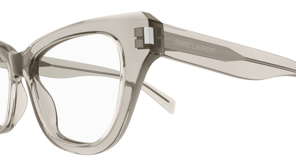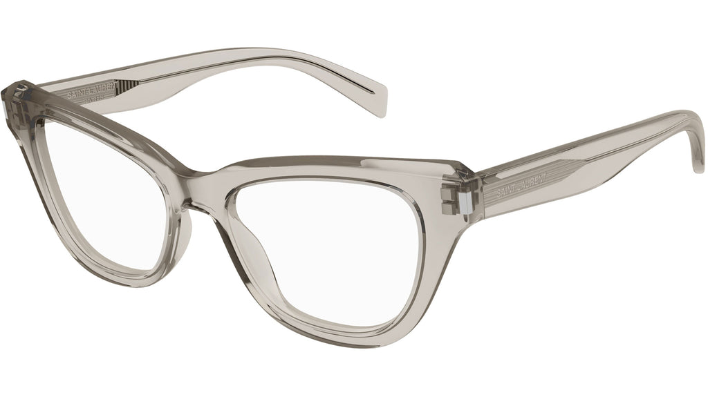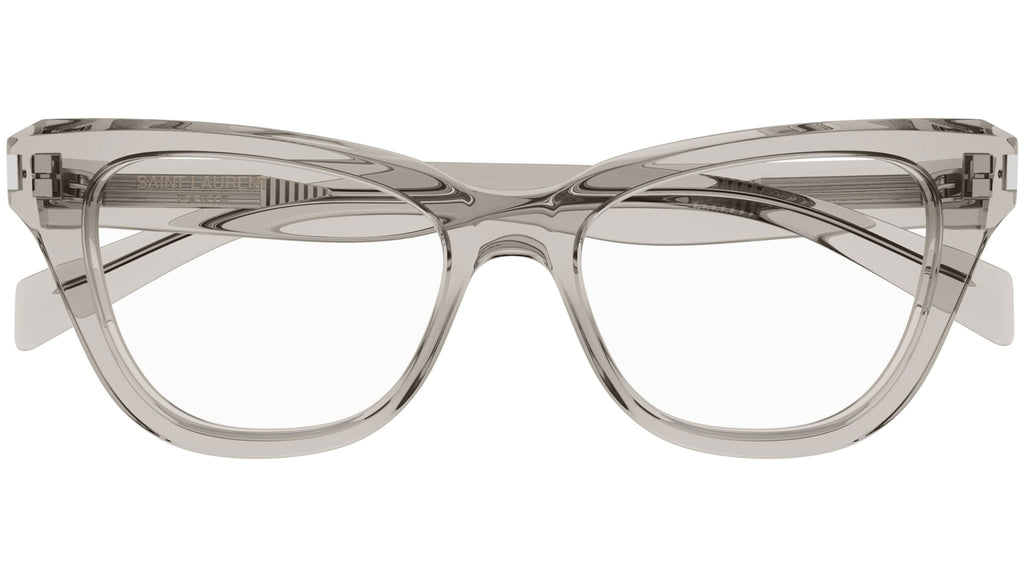 Occhiali da vista Saint Laurent SL 472 005 donna con montatura cat eye in acetato beige trasparente lucido e lenti demo. Linea: New Wave. Codice modello: SL 472. Codice colore: 005. Made in Italy. Rivenditore autorizzato Saint Laurent online. Gli occhiali vengono consegnati con custodia e accessori originali e sono coperti dalla garanzia ufficiale di 12 mesi del produttore.