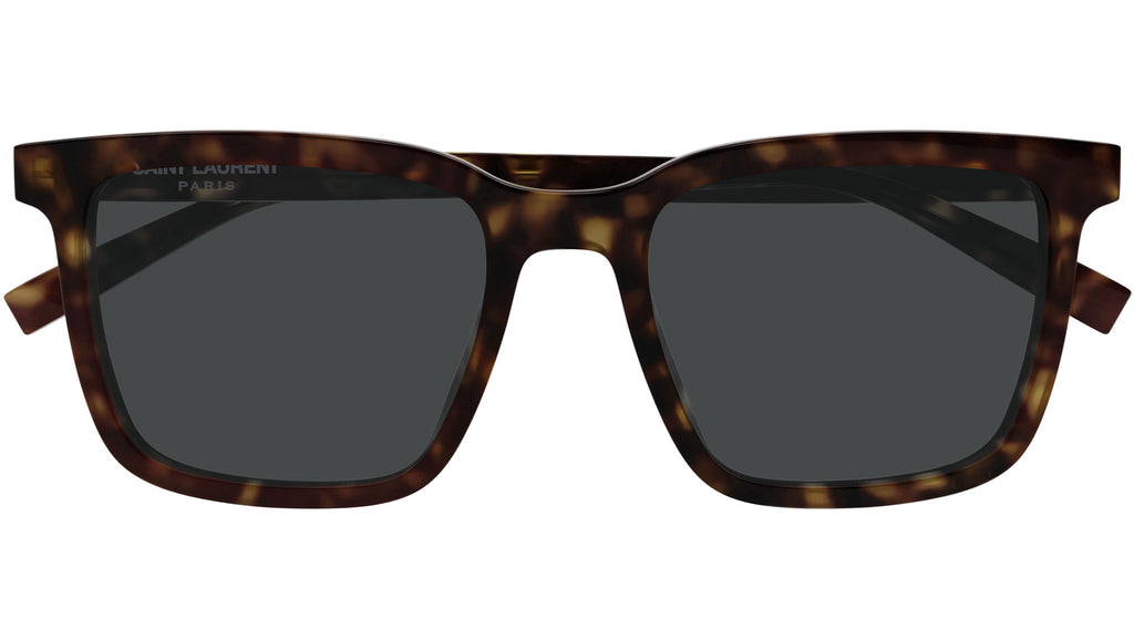 Occhiali da sole Saint Laurent modello SL 500 linea Classic codice colore 002 tartaruga scuro lucido in acetato forma rectangle con lenti color grigio fumo tinta unita.