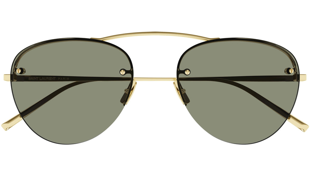 Occhiali da sole Saint Laurent linea New Wave modello SL 575 variante colore 003 oro chiaro lucido con lenti color oro.