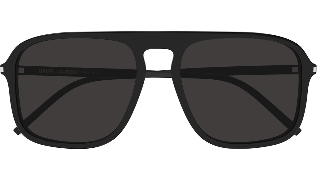 Occhiali da sole Saint Laurent modello SL 590 linea Classic codice colore 001 nero lucido tinta unita in acetato riciclato forma rectangle con lenti color nero tinta unita.