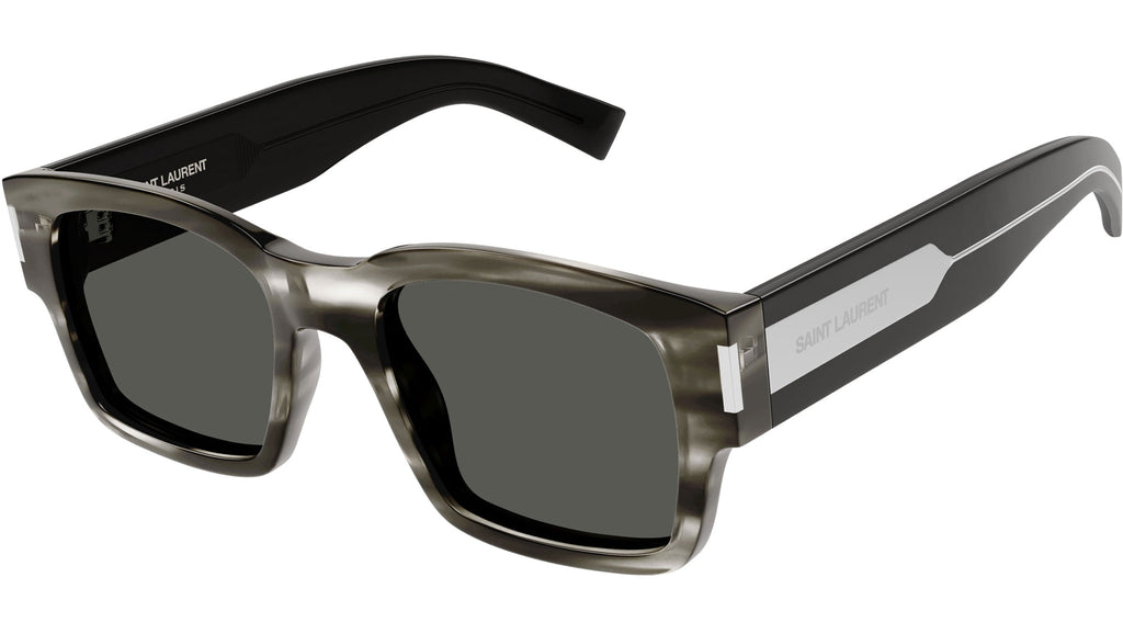 Occhiali da sole Saint Laurent modello SL 617 linea New Wave codice colore 004 grigio striato lucido in acetato riciclato forma rectangle con lenti color grigio tinta unita.