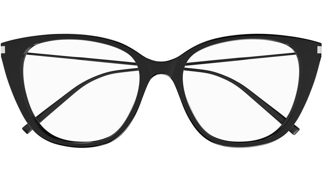 Occhiali da vista Saint Laurent modello SL 627 linea New Wave codice colore 001 nero lucido in acetato riciclato forma cat eye con aste color nero.