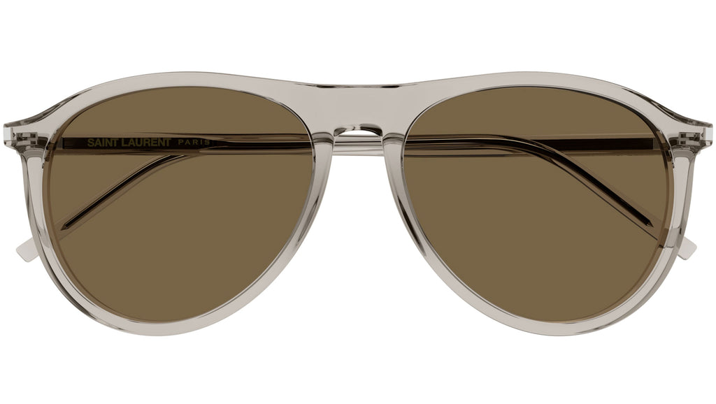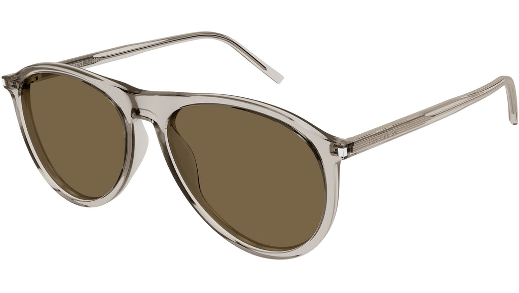 Occhiali da sole Saint Laurent SL 667 004 unisex con montatura aviatore in acetato riciclato beige trasparente lucido e lenti marrone tinta unita. Linea: Classic. Codice modello: SL 667. Codice colore: 004. Made in Italy. Rivenditore autorizzato Saint Laurent online. Gli occhiali vengono consegnati con custodia e accessori originali e sono coperti dalla garanzia ufficiale di 12 mesi del produttore.