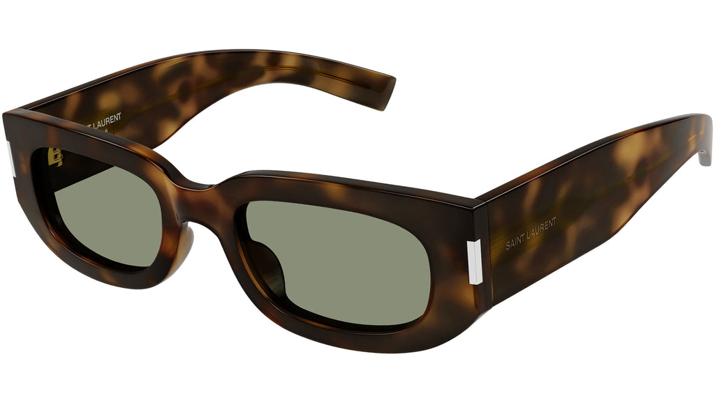 Occhiali da sole Saint Laurent SL 697 002 unisex con montatura pantos in acetato riciclato avana medio lucido e lenti verde tinta unita. Linea: Classic. Codice modello: SL 697. Codice colore: 002. Made in Italy. Rivenditore autorizzato Saint Laurent online. Gli occhiali vengono consegnati con custodia e accessori originali e sono coperti dalla garanzia ufficiale di 12 mesi del produttore.