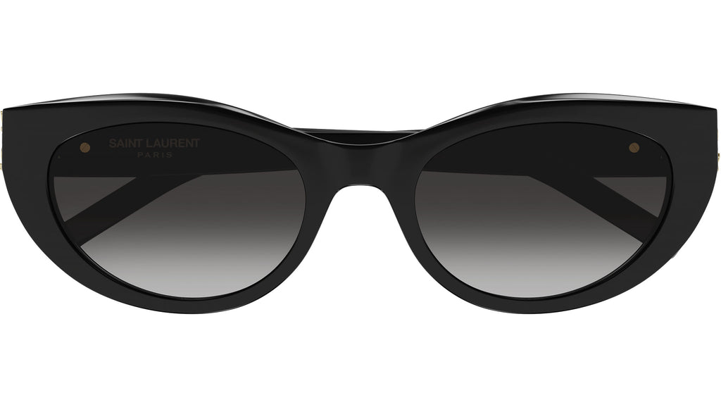 Occhiali da sole Saint Laurent linea Monogram modello SL M115 variante colore 002 nero lucido tinta unita con lenti color nero.