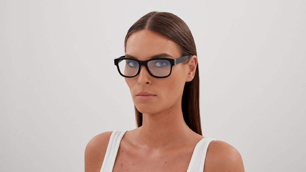 Occhiali da vista Saint Laurent SL M132 donna con montatura pantos in acetato riciclato nero lucido tinta unita e lenti demo. Linea: Classic. Codice modello: SL M132. Codice colore 55 mm: 004. 53 mm: 002. Made in Italy. Rivenditore autorizzato Saint Laurent online. Gli occhiali vengono consegnati con custodia e accessori originali e sono coperti dalla garanzia ufficiale di 12 mesi del produttore.
