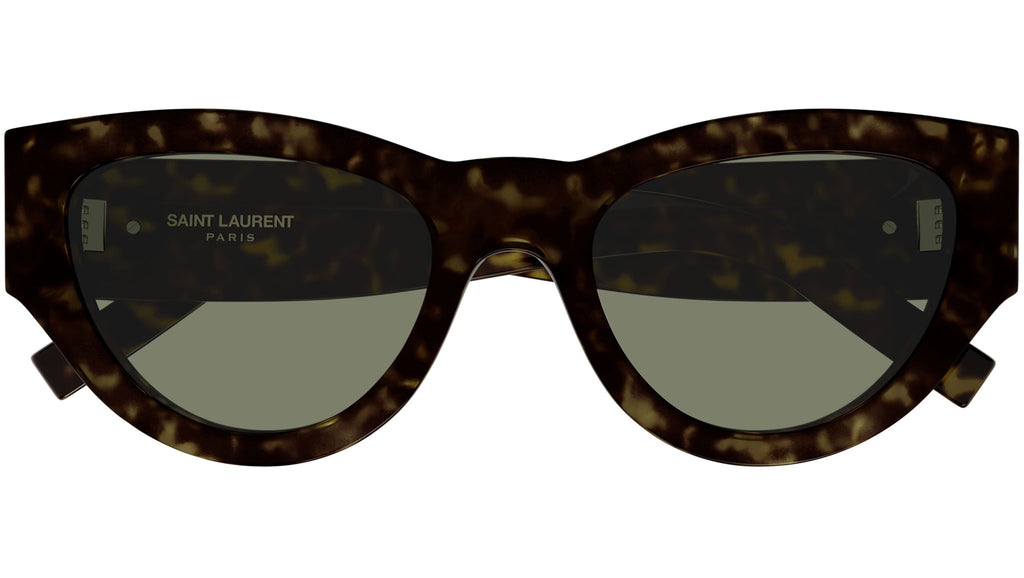 Occhiali da sole Saint Laurent SL M94 008 donna con montatura cat eye in acetato avana scuro lucido e lenti verde tinta unita. Linea: Monogram. Codice modello: SL M94. Codice colore: 008. Made in Italy. Rivenditore autorizzato Saint Laurent online. Gli occhiali vengono consegnati con custodia e accessori originali e sono coperti dalla garanzia ufficiale di 12 mesi del produttore.