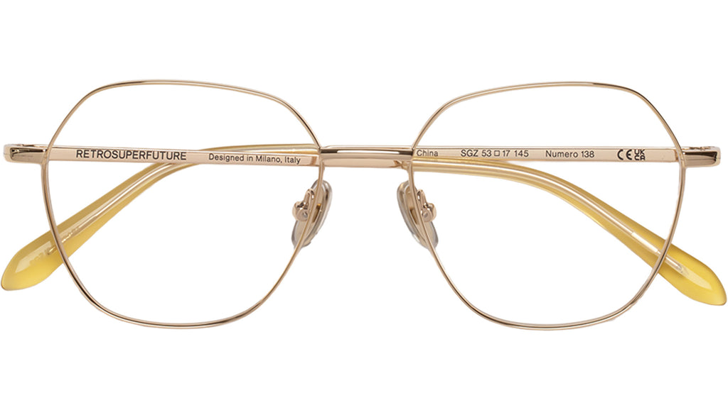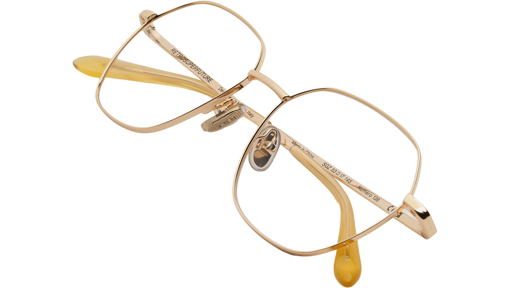 Montatura per occhiali da vista Retrosuperfuture Numero 138 Cremoso con montatura in metallo crema e lenti demo. Codice modello: SGZ. Made in Italy. Rivenditore autorizzato RSF online. Gli occhiali vengono consegnati con custodia e accessori originali e sono coperti dalla garanzia ufficiale di 12 mesi del produttore.