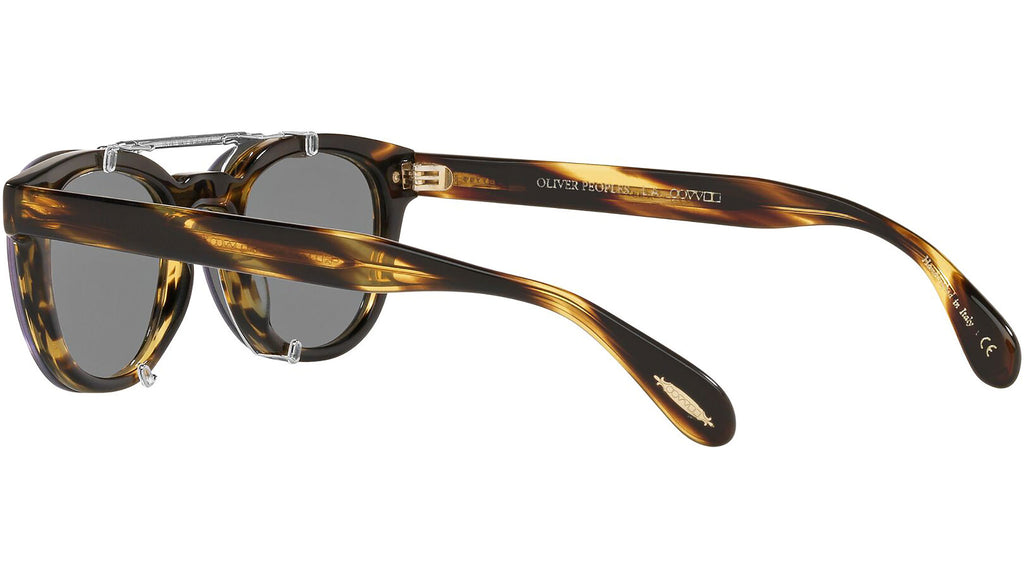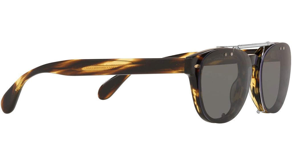 Progettata per l'iconica montatura da vista Sheldrake, l'esclusiva clip flip-up reinterpreta in chiave moderna la classica clip-on da sole. Dall'estetica elegante e lineare, la clip presenta una barra superiore in metallo e lenti glasant polarizzate.