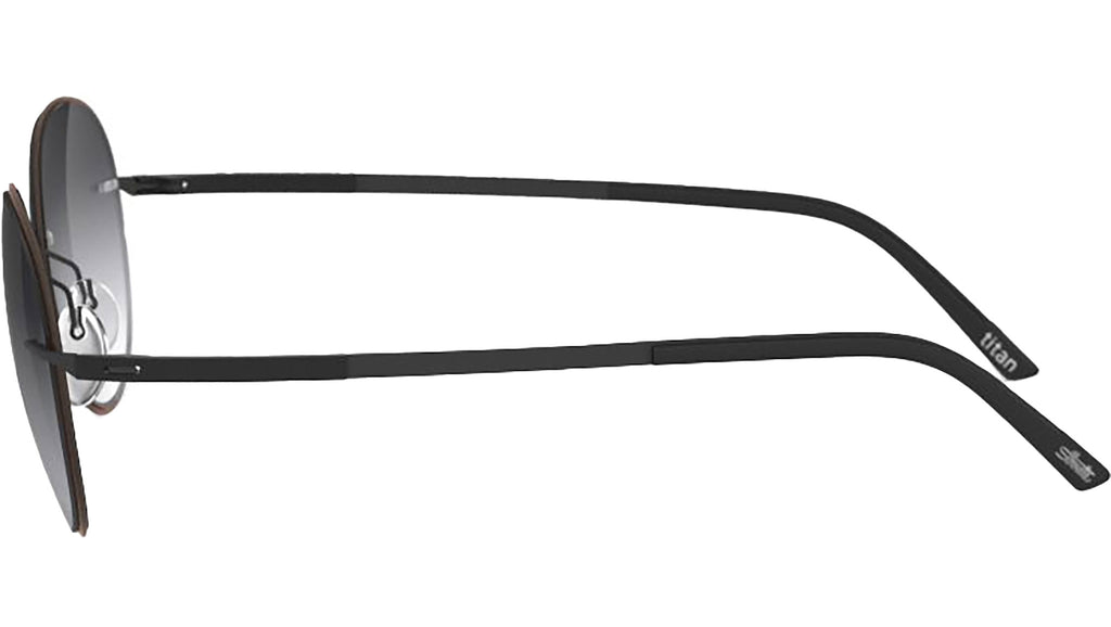 Silhouette Accent Shades 8720 in 6040 frame color featuring classic grey gradient lenses. A modern twist on our timeless classic: as part of the Accent Shade collection, the delicate shape of the Jakomini frames, in the much loved panto style, gives a distinctly clean look. At Silhouette, the emphasis is placed on more than just superior quality and innovative design; functionality and protection are also pivotal elements in all their sunglasses. An ideal illustration of this is the patented Silhouette Light Management® technology, which provides unparalleled shielding against detrimental UV rays and blue light. Silhouette's meticulously engineered lens transmittance ranges offer a delightful brightening effect and vibrant, high-contrast color perception. This, along with exceptional anti-glare protection, makes their sunglasses truly outstanding.