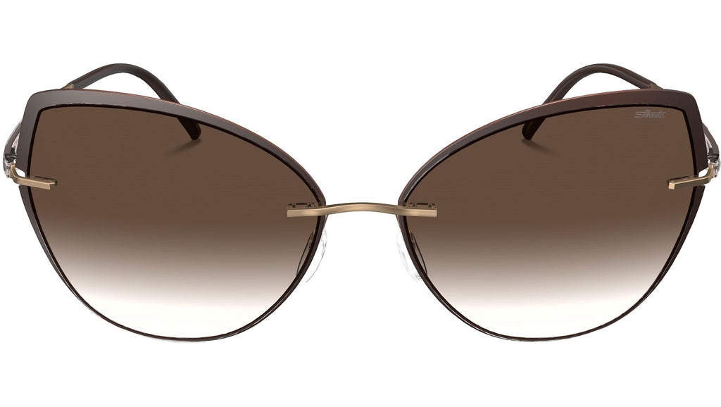Silhouette Accent Shades 8188 in 6030 frame color featuring classic brown gradient lenses. At Silhouette, the emphasis is placed on more than just superior quality and innovative design; functionality and protection are also pivotal elements in all their sunglasses. An ideal illustration of this is the patented Silhouette Light Management® technology, which provides unparalleled shielding against detrimental UV rays and blue light. Silhouette's meticulously engineered lens transmittance ranges offer a delightful brightening effect and vibrant, high-contrast color perception. This, along with exceptional anti-glare protection, makes their sunglasses truly outstanding.