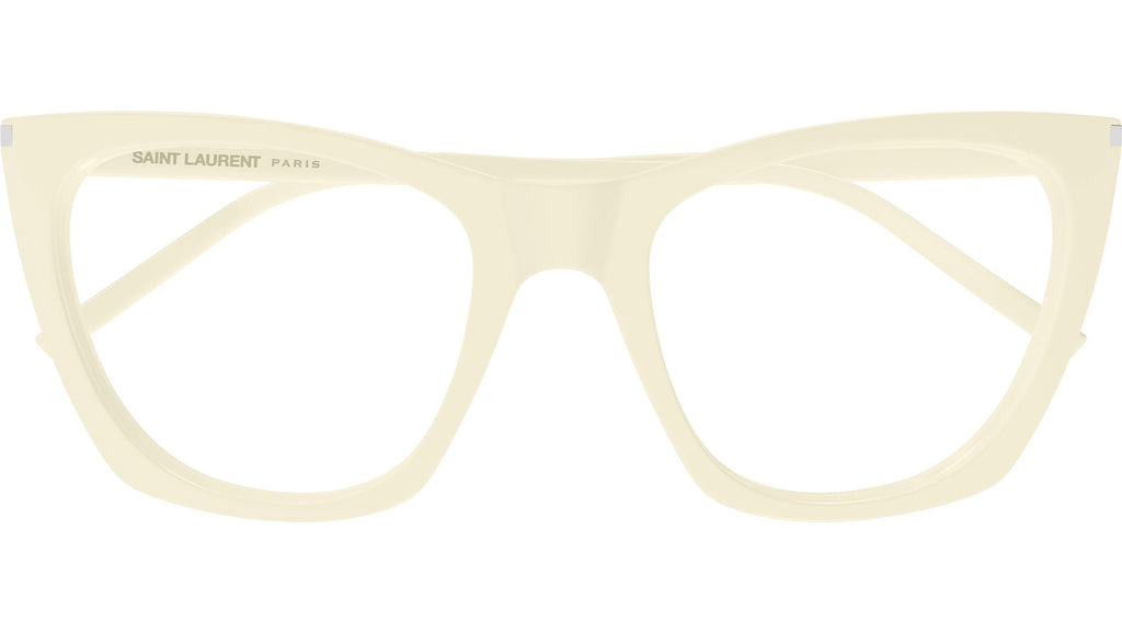 Occhiali da vista Saint Laurent SL 214 KATE THIN OPT 008 donna con montatura cat eye in acetato riciclato avorio tinta unita lucido e lenti demo. Linea: Corner Angle. Codice modello: SL 214 KATE THIN OPT. Codice colore: 008. Made in Italy. Rivenditore autorizzato Saint Laurent online. Gli occhiali vengono consegnati con custodia e accessori originali e sono coperti dalla garanzia ufficiale di 12 mesi del produttore.