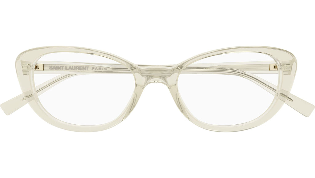 Occhiali da vista Saint Laurent SL 822 OPT 004 donna con montatura cat eye in acetato riciclato giallo chiaro trasparente lucido e lenti demo. Linea: SL Logo. Codice modello: SL 822 OPT. Codice colore: 004. Made in Italy. Rivenditore autorizzato Saint Laurent online. Gli occhiali vengono consegnati con custodia e accessori originali e sono coperti dalla garanzia ufficiale di 12 mesi del produttore.