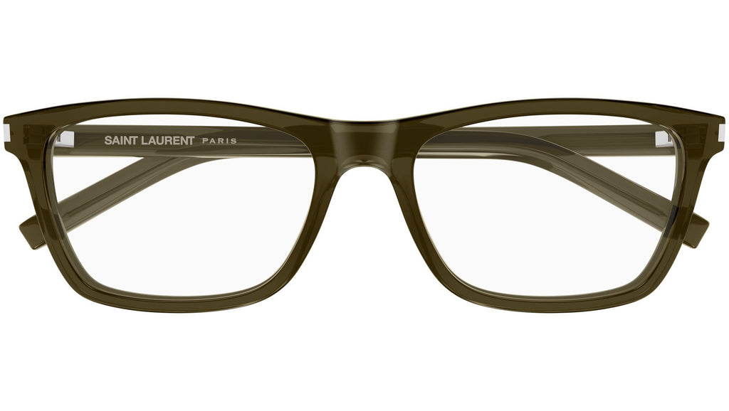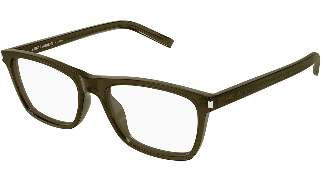 Occhiali da vista Saint Laurent SL 841 uomo con montatura rettangolare in acetato riciclato kaki trasparente lucido e lenti demo. Linea: Corner Angle. Codice modello: SL 841. Codice colore 58 mm: 010. 54 mm: 005. Made in Italy. Rivenditore autorizzato Saint Laurent online. Gli occhiali vengono consegnati con custodia e accessori originali e sono coperti dalla garanzia ufficiale di 12 mesi del produttore.