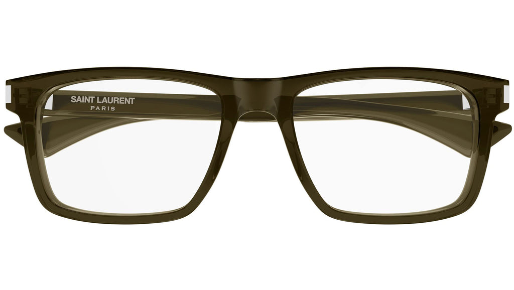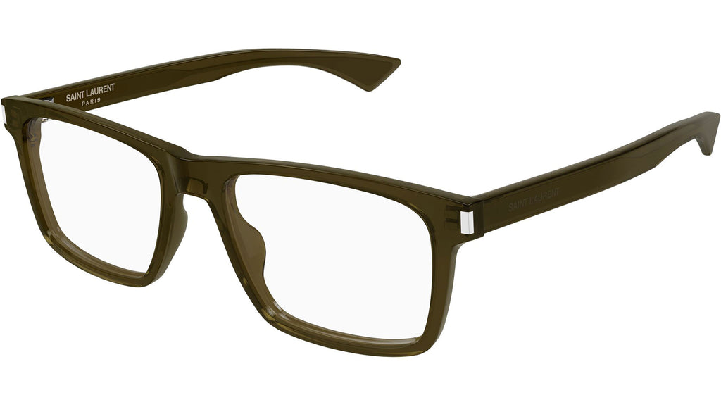 Occhiali da vista Saint Laurent SL 882 009 uomo con montatura rettangolare in acetato riciclato kaki trasparente lucido e lenti demo. Linea: Corner Angle. Codice modello: SL 882. Codice colore: 009. Made in Japan. Rivenditore autorizzato Saint Laurent online. Gli occhiali vengono consegnati con custodia e accessori originali e sono coperti dalla garanzia ufficiale di 12 mesi del produttore.