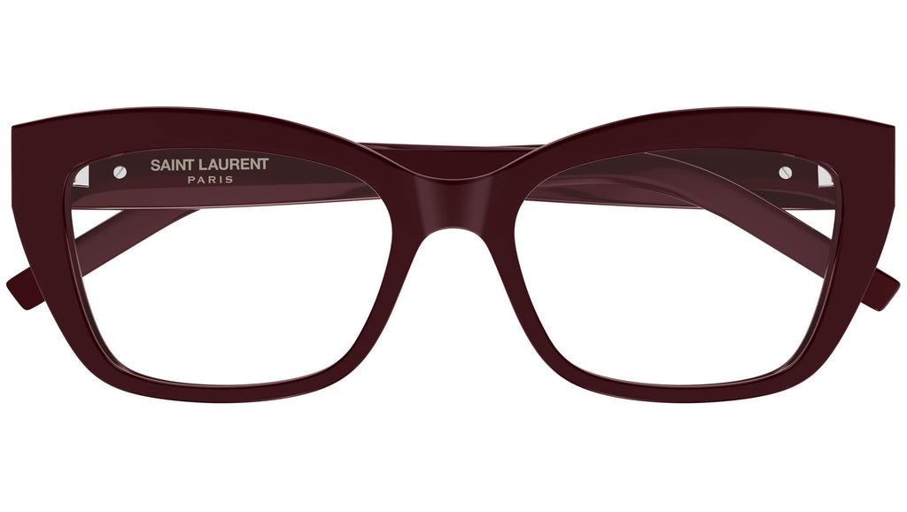 Occhiali da vista Saint Laurent SL M117 010 donna con montatura cat eye in acetato riciclato bordeaux tinta unita lucido e lenti demo. Linea: Monogram. Codice modello: SL M117. Codice colore: 010. Made in Italy. Rivenditore autorizzato Saint Laurent online. Gli occhiali vengono consegnati con custodia e accessori originali e sono coperti dalla garanzia ufficiale di 12 mesi del produttore.
