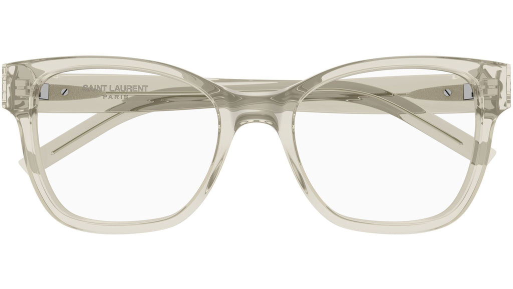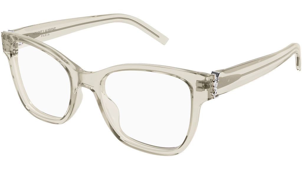 Occhiali da vista Saint Laurent SL M158 donna con montatura cat eye in acetato riciclato crema trasparente lucido e lenti demo. Linea: Monogram. Codice modello: SL M158. Codice colore 54 mm: 010. 52 mm: 005. Made in Italy. Rivenditore autorizzato Saint Laurent online. Gli occhiali vengono consegnati con custodia e accessori originali e sono coperti dalla garanzia ufficiale di 12 mesi del produttore.