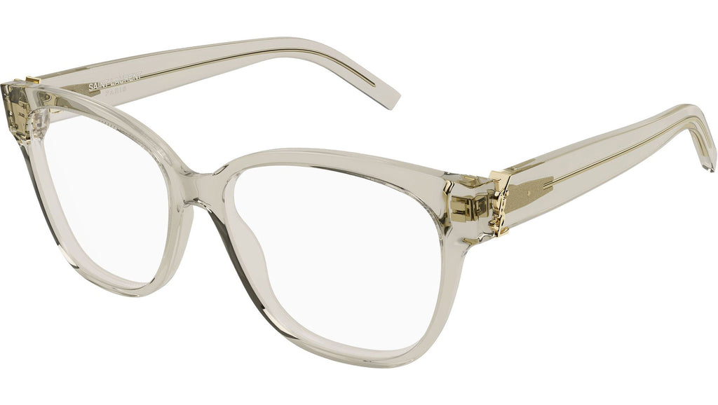 Occhiali da vista Saint Laurent SL M33 009 donna con montatura rettangolare in acetato beige trasparente lucido e lenti demo. Linea: Monogram. Codice modello: SL M33. Codice colore: 009. Made in Italy. Rivenditore autorizzato Saint Laurent online. Gli occhiali vengono consegnati con custodia e accessori originali e sono coperti dalla garanzia ufficiale di 12 mesi del produttore.