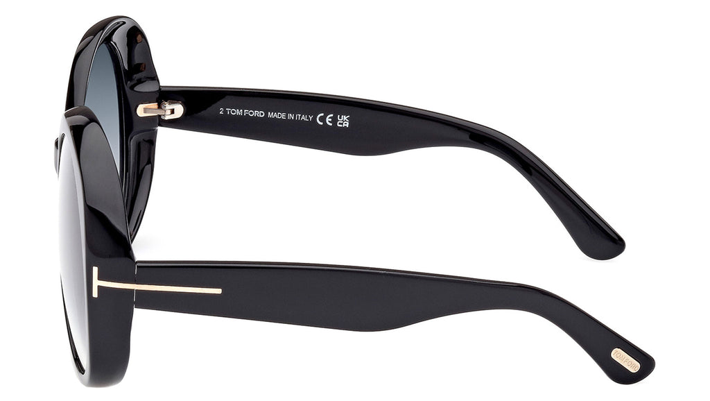 Occhiali da sole Tom Ford Annabelle modello FT1010 in nero lucido, codice colore 01B con lenti color grigio sfumato. L'ultima collezione di occhiali Tom Ford trae ispirazione da due concetti distinti: minimalismo raffinato, che mette in risalto design essenziali, forme senza tempo, materiali premium; e combinazioni preziose, che mostrano miscele innovative di acetato e metallo, soluzioni di design inaspettate e progressi tecnologici. Esprimendosi in silhouette audaci ed eleganti, la collezione presenta occhiali caratterizzati da squisite miscele di acetato e metallo, espressione di design distintivi e immediatamente riconoscibili. Elementi iconici come il logo in metallo a T e il famoso simbolo dell'infinito adornano le montature, mentre gli stili più classici vengono reinventati in palette di colori freschi che riflettono le ultime tendenze della moda.