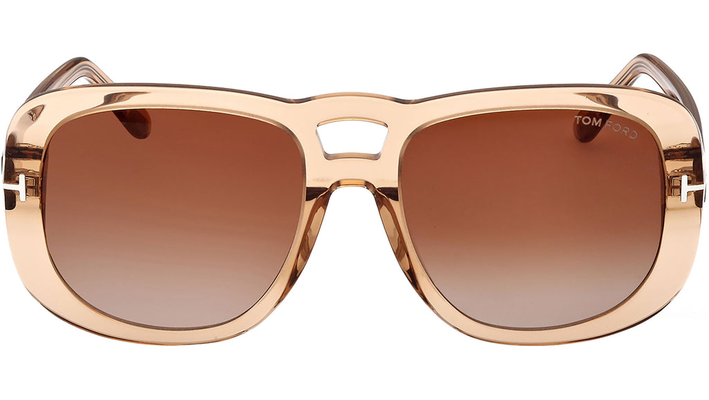 Occhiali da sole Tom Ford Billie modello FT1012 in marrone trasparente, codice colore 45F con lenti color marrone sfumato. L'ultima collezione di occhiali Tom Ford trae ispirazione da due concetti distinti: minimalismo raffinato, che mette in risalto design essenziali, forme senza tempo, materiali premium; e combinazioni preziose, che mostrano miscele innovative di acetato e metallo, soluzioni di design inaspettate e progressi tecnologici. Esprimendosi in silhouette audaci ed eleganti, la collezione presenta occhiali caratterizzati da squisite miscele di acetato e metallo, espressione di design distintivi e immediatamente riconoscibili. Elementi iconici come il logo in metallo a T e il famoso simbolo dell'infinito adornano le montature, mentre gli stili più classici vengono reinventati in palette di colori freschi che riflettono le ultime tendenze della moda.